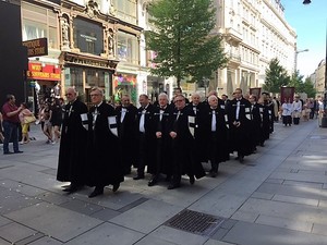 Wie jedes Jahr, so auch heuer, nahmen die Familiaren der Ballei Österreich sehr zahlreich an den Fronleichnamsfeierlichkeiten in Wien teil, unterstütz von einigen Familiaren der Komturei „An Tauber, Neckar und Bodensee“, die unter Ihren Komtur Hans Joachim Staudenmaier eine Wienreise unternommen hatten. Um 08.30 begann das Pontifikalamt im Dom zu St. Stephan unter dem Hauptzelebranten Kardinal Dr. Christoph Schönborn. Hochmeister Dr. Bruno Platter war gemeinsam mit dem Erzbischof von Lahore, Pakistan, Sebastian Shaw, Ko-Zelebrant.